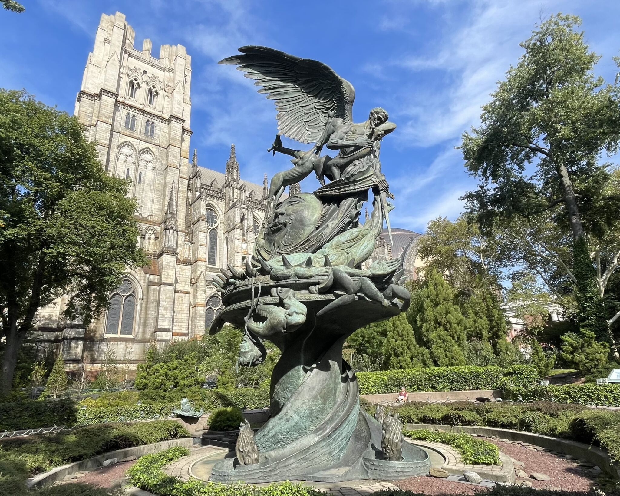 De Peace Fountain, bij de Cathedral of St. John the Divine, voelt bijna als een verborgen plek. Groot, indrukwekkend en een beetje mysterieus. Het is één van mijn favoriete plekken in heel New York City. Ik kan hier uren op een bankje zitten, genieten van de rust en het uitzicht. Perfect om je dag in Harlem ontspannen te beginnen.